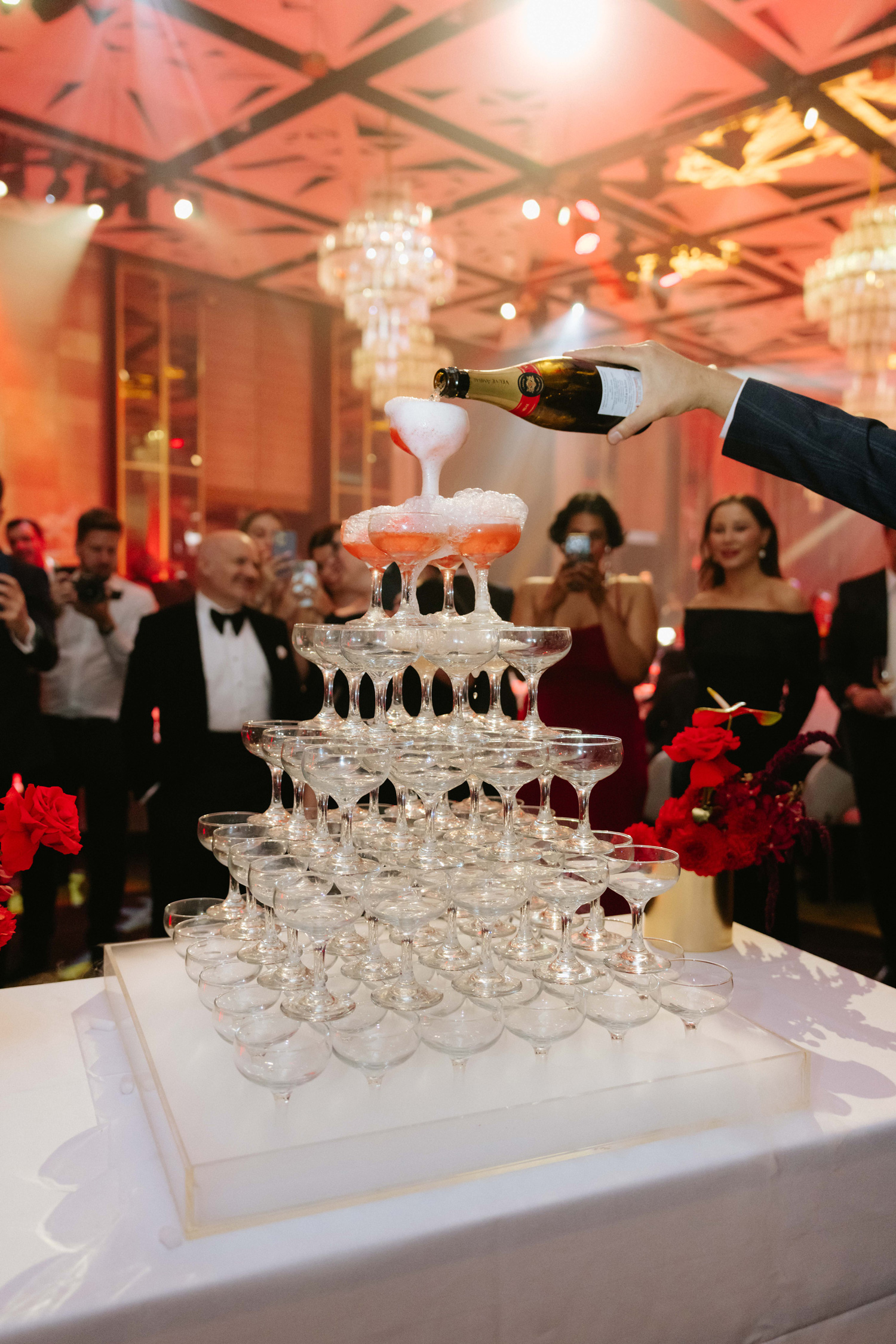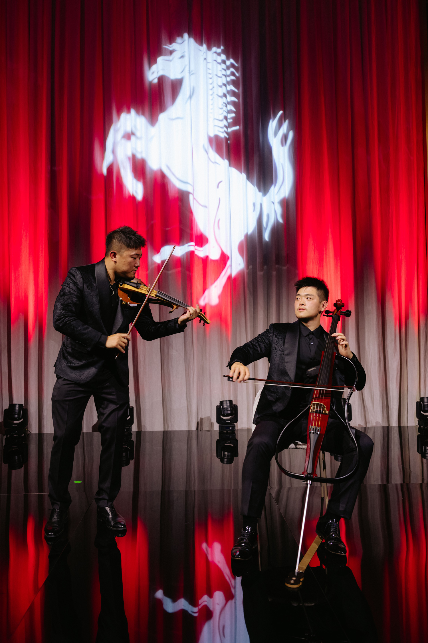 Guests were seamlessly immersed in an unforgettable evening where Ferrari’s essence intertwined with opulence and innovation. The meticulously tailored execution ensured engagement at every touchpoint throughout the night. Upon entering, the grand foyer resonated with the harmonies of a grand piano, setting the stage for mingling amidst a red-themed aperitivo bar and a prominent photo moment.